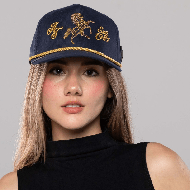 Si te gustan las gorras originales y con estilo, esta gorra azul con caballo dorado es para ti. Una gorra estilo urbano, perfecta para completar cualquier outfit, ya sea casual o del día a día. Su diseño tipo gorra béisbol y su bordado llamativo la convierten en una de esas gorras que realmente destacan.