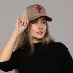 Gorra caqui en drill AT con logo rosado. Estilo urbano, original y de alta calidad. Ideal para hombre. Envíos a toda Colombia.